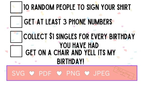 Birthday Shirt 10 Item Checklist Bar Hopping Birthday Girl Etsy