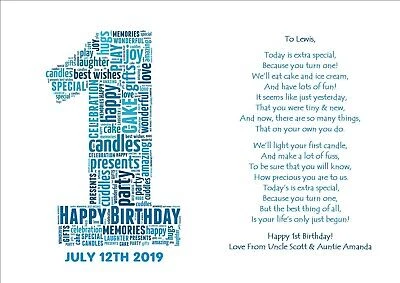 Personalised 1st First Birthday gift baby girl boy son daughter